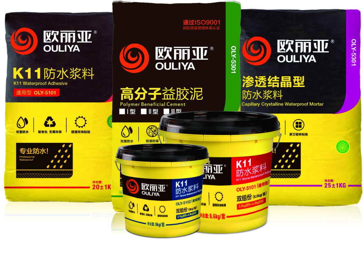歐麗亞聚合物水泥防水涂料根據(jù)性能和使用部位不同分為Ⅰ型、Ⅱ型和Ⅲ型三種型號(hào)。Ⅰ型聚合物水泥防水涂料突出丙烯酸酯聚合物乳液微珠的性能,形成的涂膜延伸率高、耐候性好,主要用于非長(zhǎng)期浸水環(huán)境下。Ⅱ型和Ⅲ型聚合物水泥防水涂料突出高鋁高鐵水泥為主的性能,形成的涂膜拉伸強(qiáng)度高、耐水性好,主要用于長(zhǎng)期浸水環(huán)境下的防水工程。