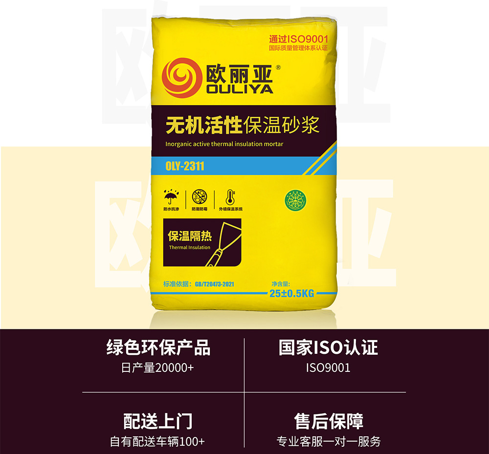 歐麗亞歷經(jīng)近十載的誠信經(jīng)營,憑借其優(yōu)良品質(zhì)和專業(yè)服務(wù)在業(yè)界贏得了良好的信譽。占地面積約1.2萬平方米,擁有三個獨立生產(chǎn)車間、獨立實驗室、樣板室并擁有十余套高速干粉砂漿混合機,形成日單班產(chǎn)量500噸的強大生產(chǎn)能力,并已通過了ISO9001國際質(zhì)量管理體認證。